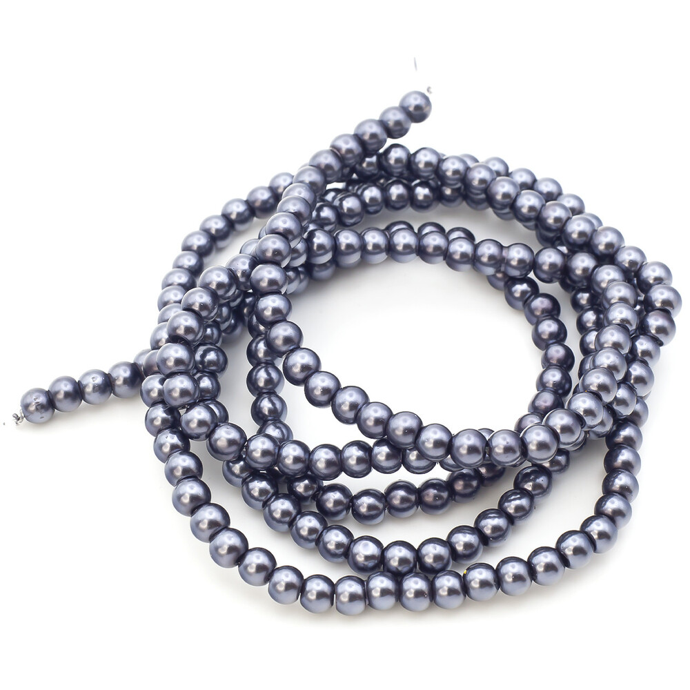 Бусины стекло под жемчуг Шар 4 мм ±210 шт. 80 см Черный
