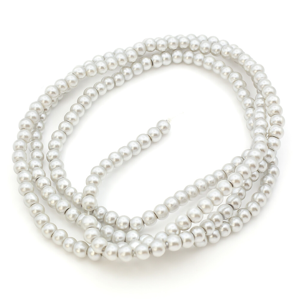 Бусины стекло под жемчуг Шар 4 мм ±210 шт. 80 см Серебристый