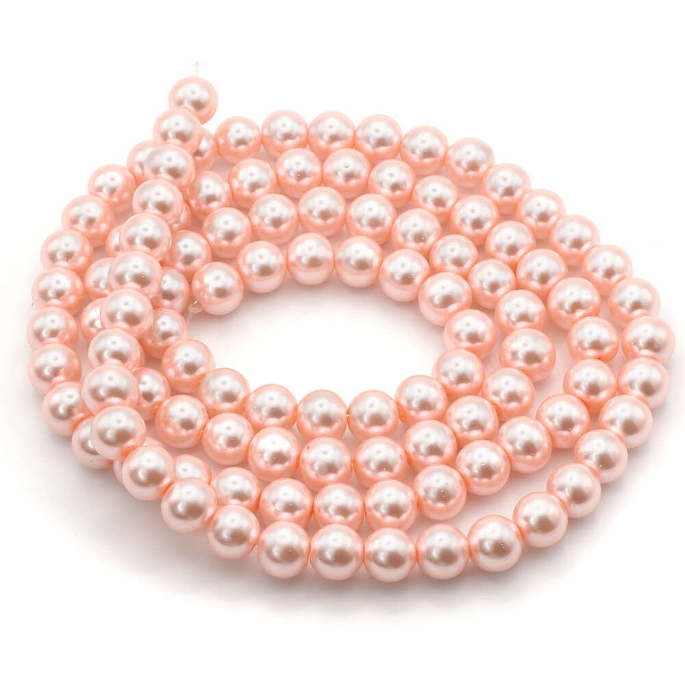 Бусины стекло под жемчуг Шар 8 мм ±105 шт. 80 см Коралловый