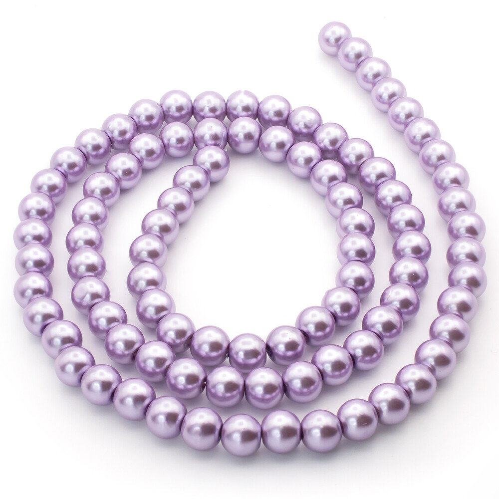 Бусины стекло под жемчуг Шар 8 мм ±105 шт. 80 см Сиреневый