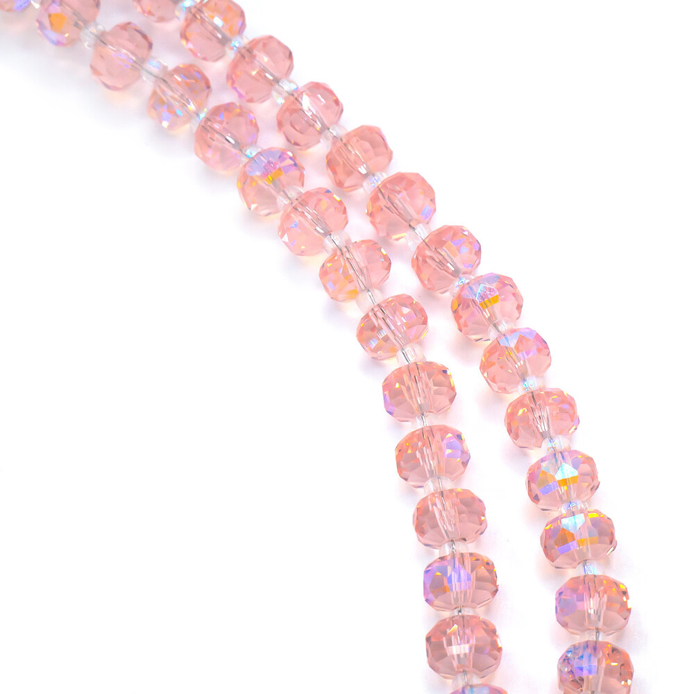 Бусины Хрусталь рондель с бисером 5х8 мм и 2х4 мм Розовый светлый 75 см (+-по 96 шт.)