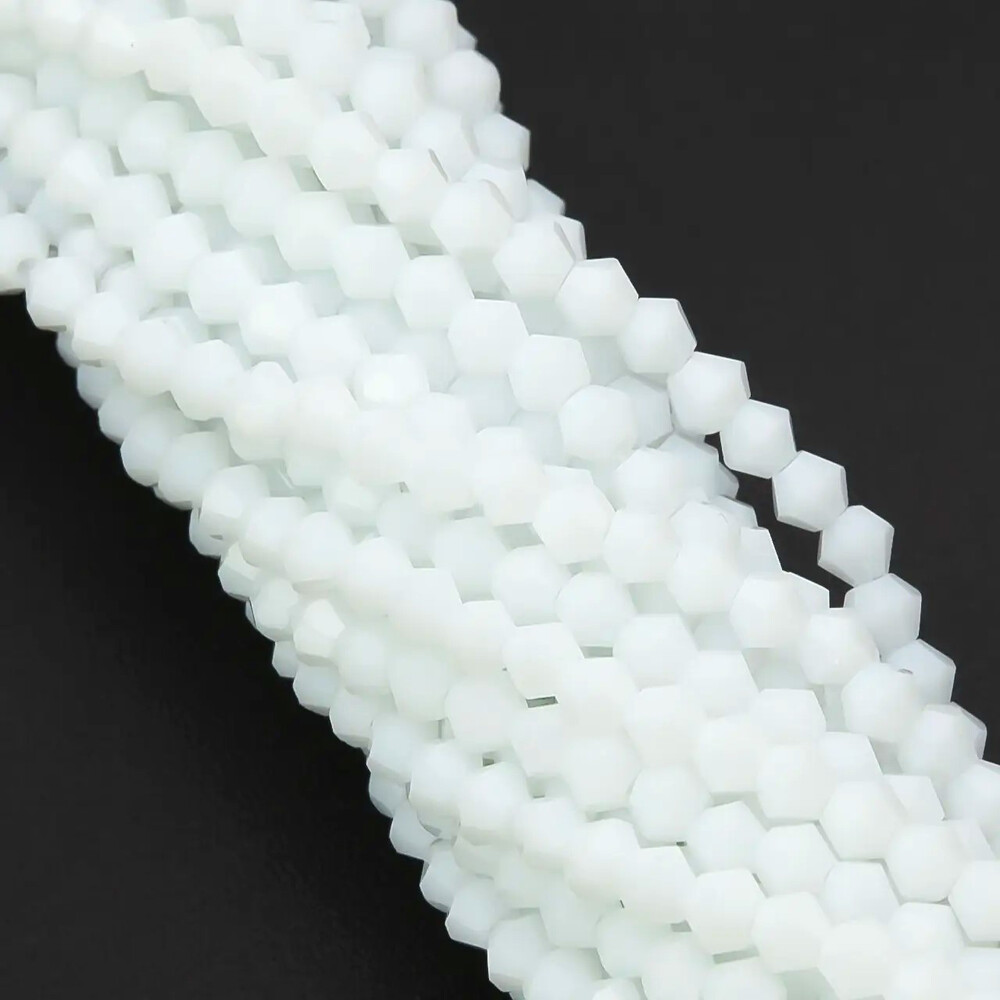 Бусины хрустальные Биконус 3,5х3 мм Ø 0,8 мм (+-115 шт.) Белый непрозрачный