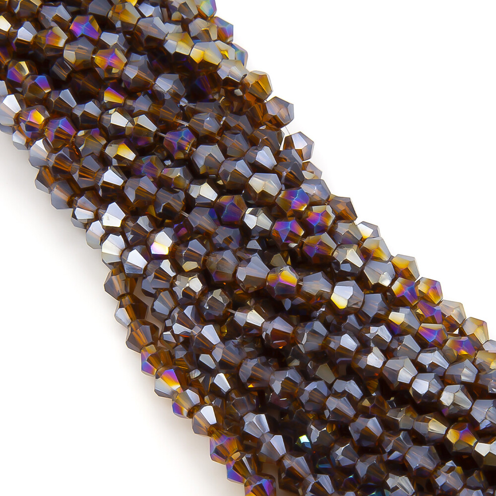 Бусины хрустальные Биконус 4х4,2 мм Ø 1 мм (+-95 шт.) Коричневый АВ