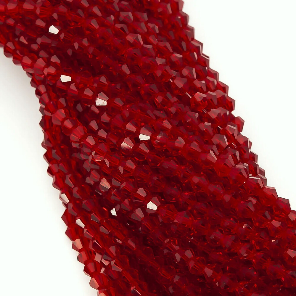 Бусины хрустальные Биконус 4х4,2 мм Ø 1 мм (+-95 шт.) Красный