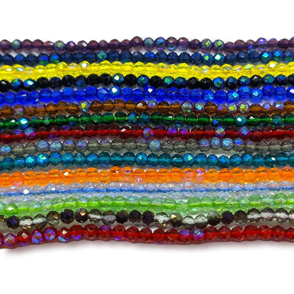 Бусины Шпинель огранка круглая 2 мм Ø 0,5 мм 200 шт. нить 37 см АВ Синий 7