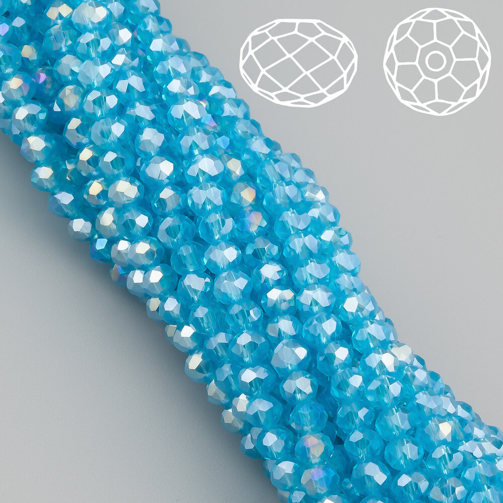 Бусины Swarovski огранка рондель 3х2,5 мм Ø 0,8 мм 38 см (+-160 шт.) Голубой АВ прозрачный