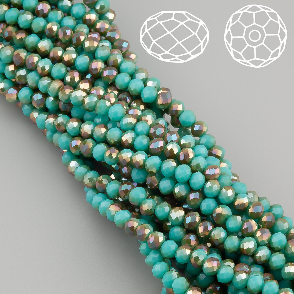 Бусины Swarovski огранка рондель 4х3,5 мм Ø 0,8 мм 42 см (+-120 шт.) Бирюзовый с коричневым АВ