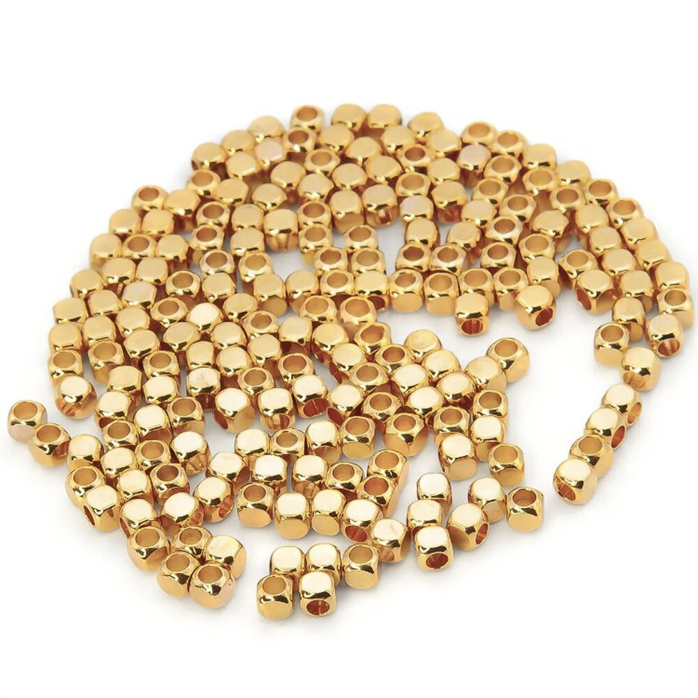 Бусины металлические Куб, +-10 шт. 3х3 мм Ø 1,4 мм Золотистый