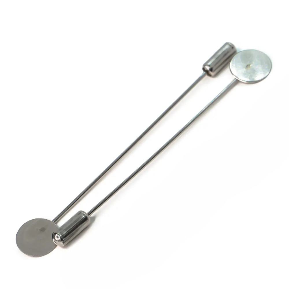 Булавка основа для брошки с заглушкой и платформой 75х10 мм Платина 2 шт.