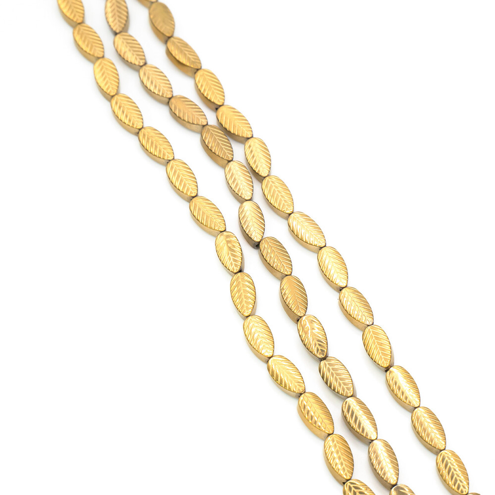 Бусины Листок Гематит 4х7 мм Золотистый 40 см +-53 шт.