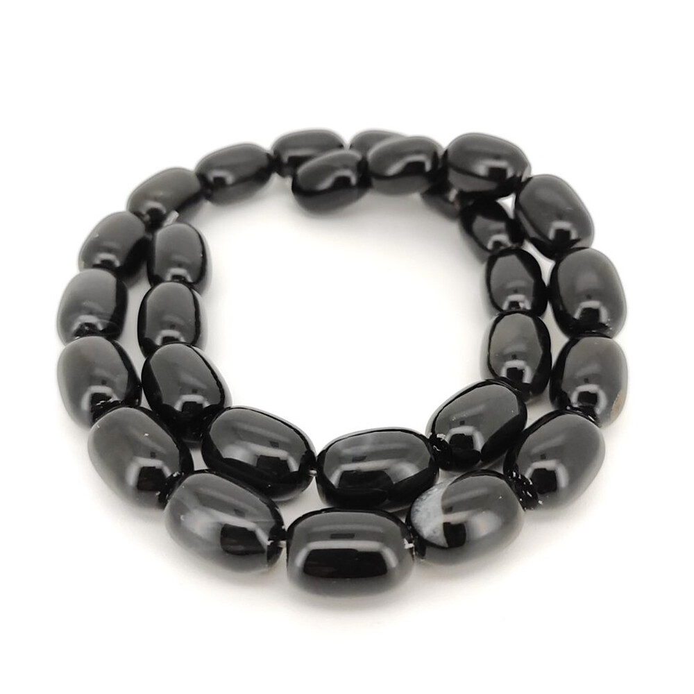 Агат черный бусины овальные из камня 14х10 мм +-40 см 28 шт.
