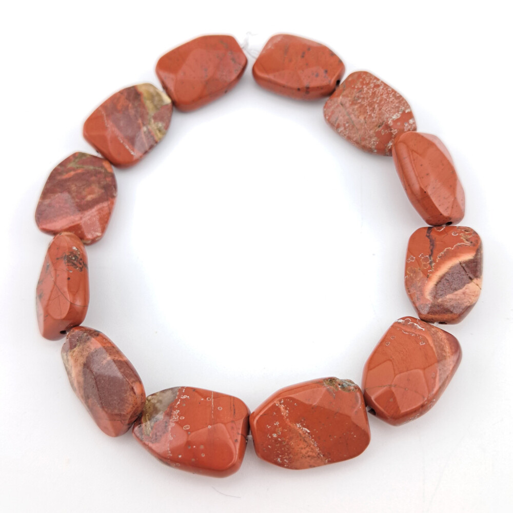 Яшма Кровавик бусины плоские из камня огранка 12х17х6 мм ±20 см 12 шт.