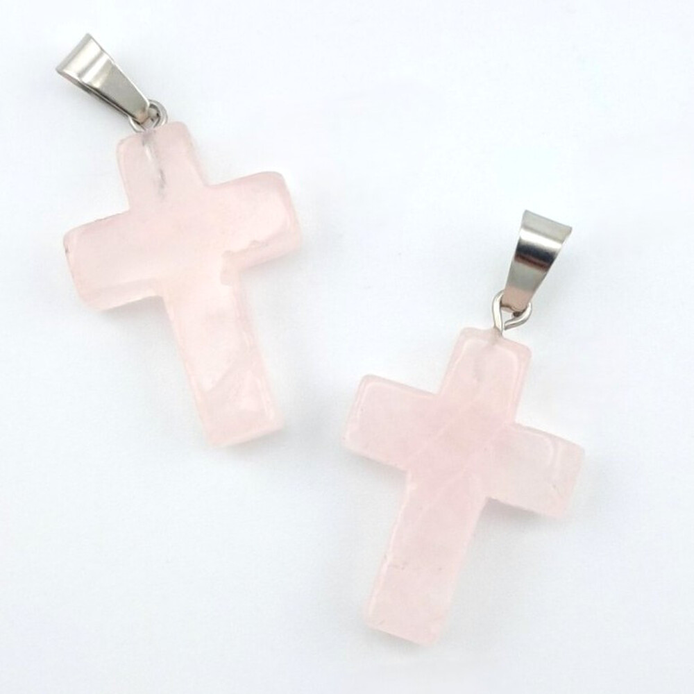 Кулон Крест Розовый кварц 35х18х6 мм 1 шт.