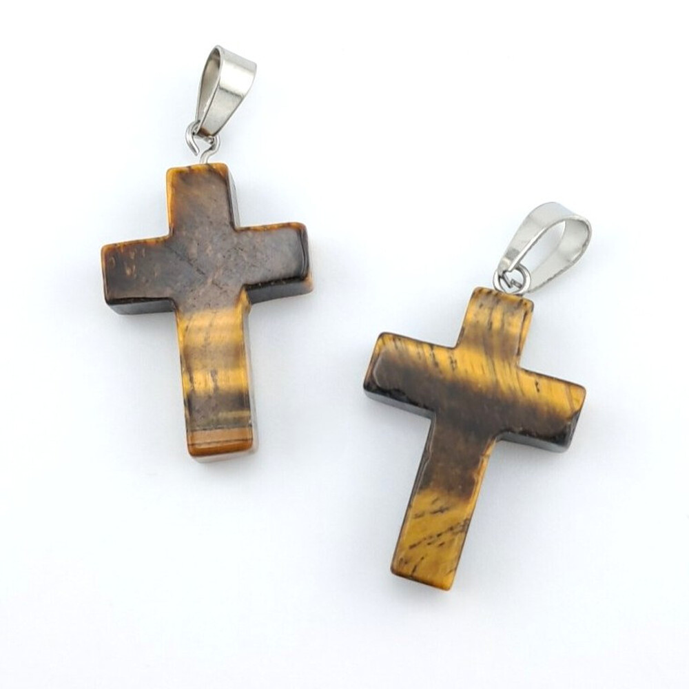 Кулон Крест Тигровый глаз 35х18х6 мм 1 шт.