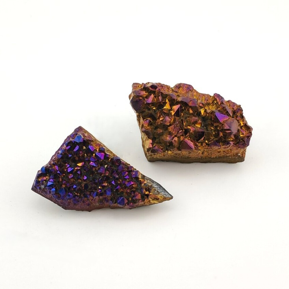 Аура-друза аметиста — это уникальный природный кристалл аметиста, прошедший специальную обработку напылением чистых металлов в вакуумной камере. Такая технология подчеркивает естественную красоту камня и придает ему яркий, ирисующий блеск. Этот кристалл сочетает в себе прочность с нежным сиянием металлических напылений, создавая впечатление «лунного света» или «звездной пыли». Он идеально подходит для коллекционирования, декоративного использования или создания авторских украшений. Аура-друза аметисту символизирует духовность, гармонию и защиту. Каждый экземпляр уникален, ведь структура кристалла и напыления делают его неповторимым. Этот кристалл станет отличным подарком для тех, кто ценит природную красоту, эстетику и магию камней, а также для тех, кто практикует энергетическую работу или медитацию.