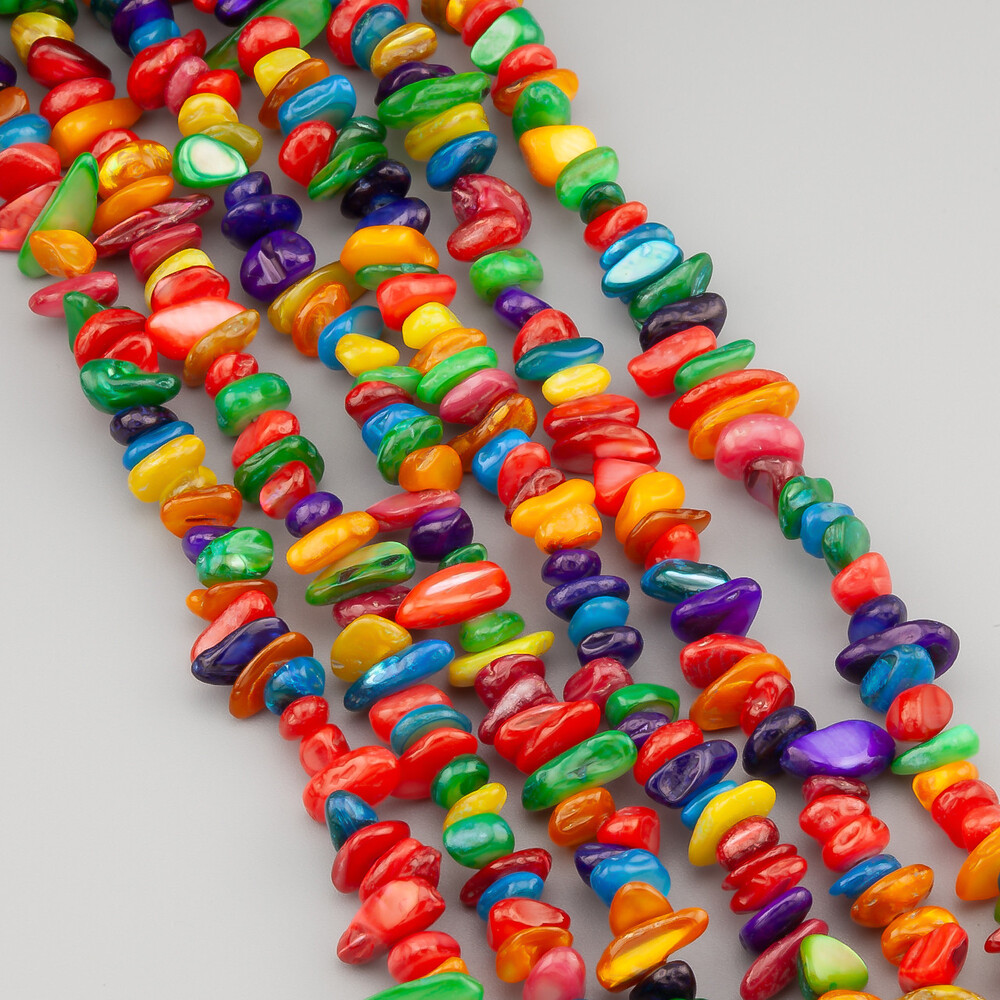 Перламутр тонированный разноцветный сколы крошка из камня 5-10 мм +-80 см 1 шт.