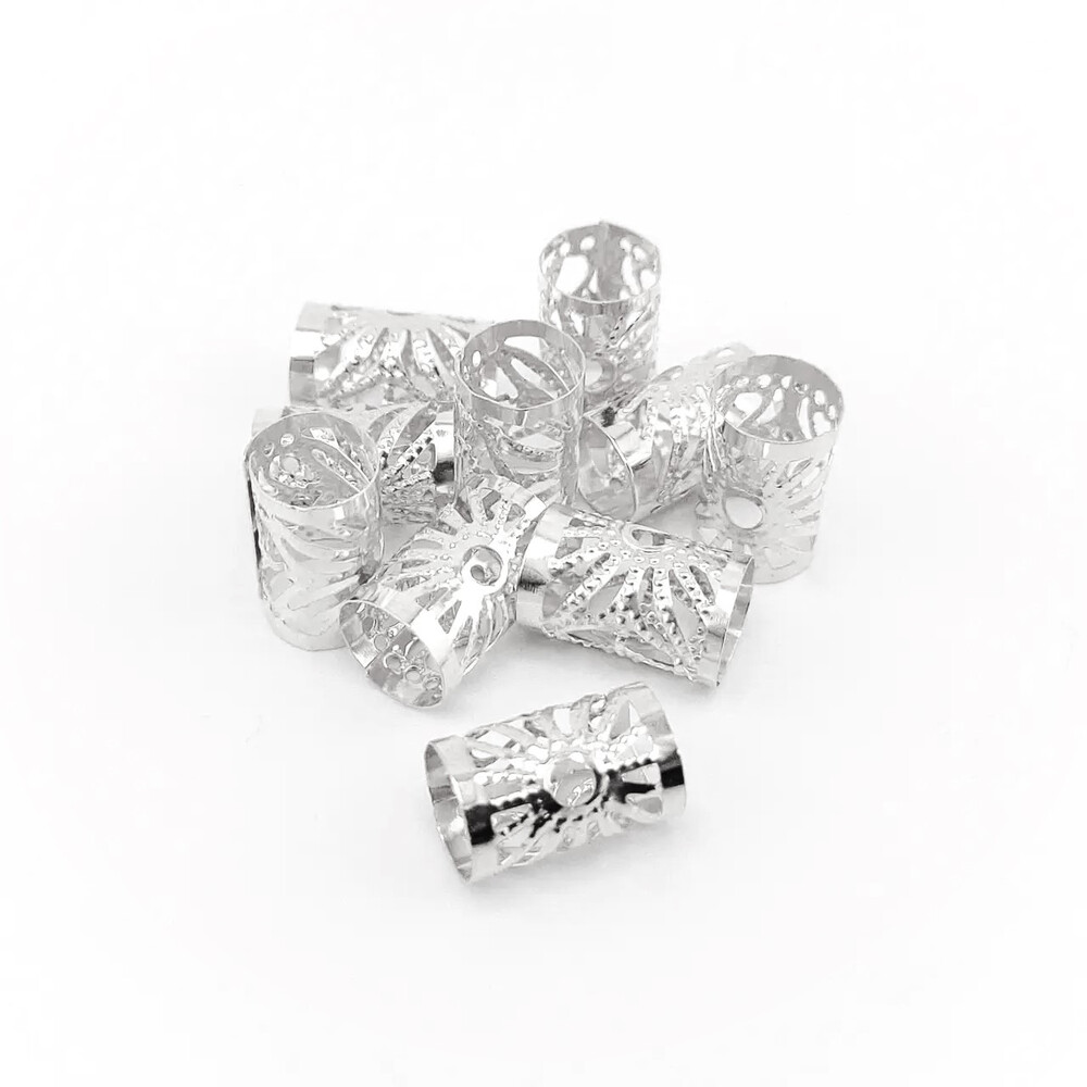 Трубочка украшение для дредов и косичек 15х10 мм 20 шт. Серебристый