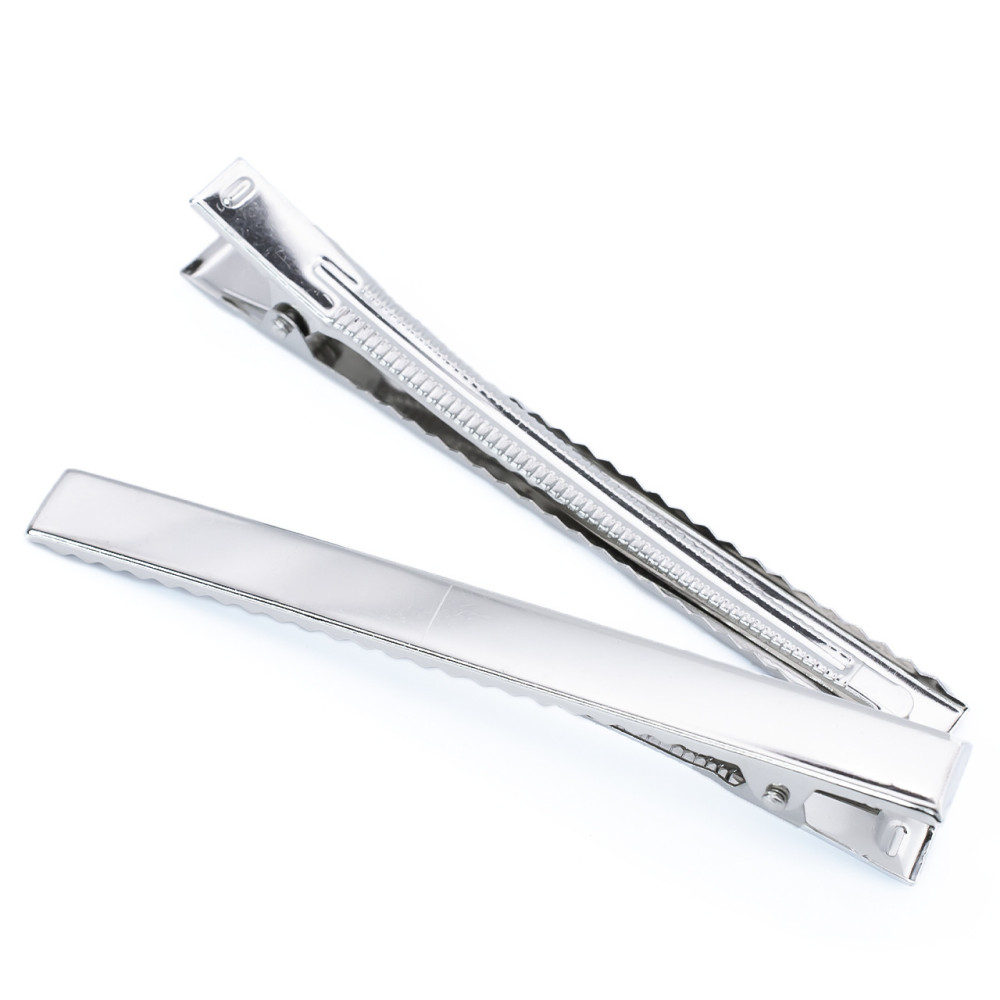 Основа для заколки имеет форму прищепки с прямоугольным верхом. Изготовлена из прочного нержавеющого сплава. Аксессуар для волос можно украсить бусинами, плетениями из бисера. Также можно создать миниатюрную цветочную композицию, которая будет прекрасно смотреться на такой основе для заколки.