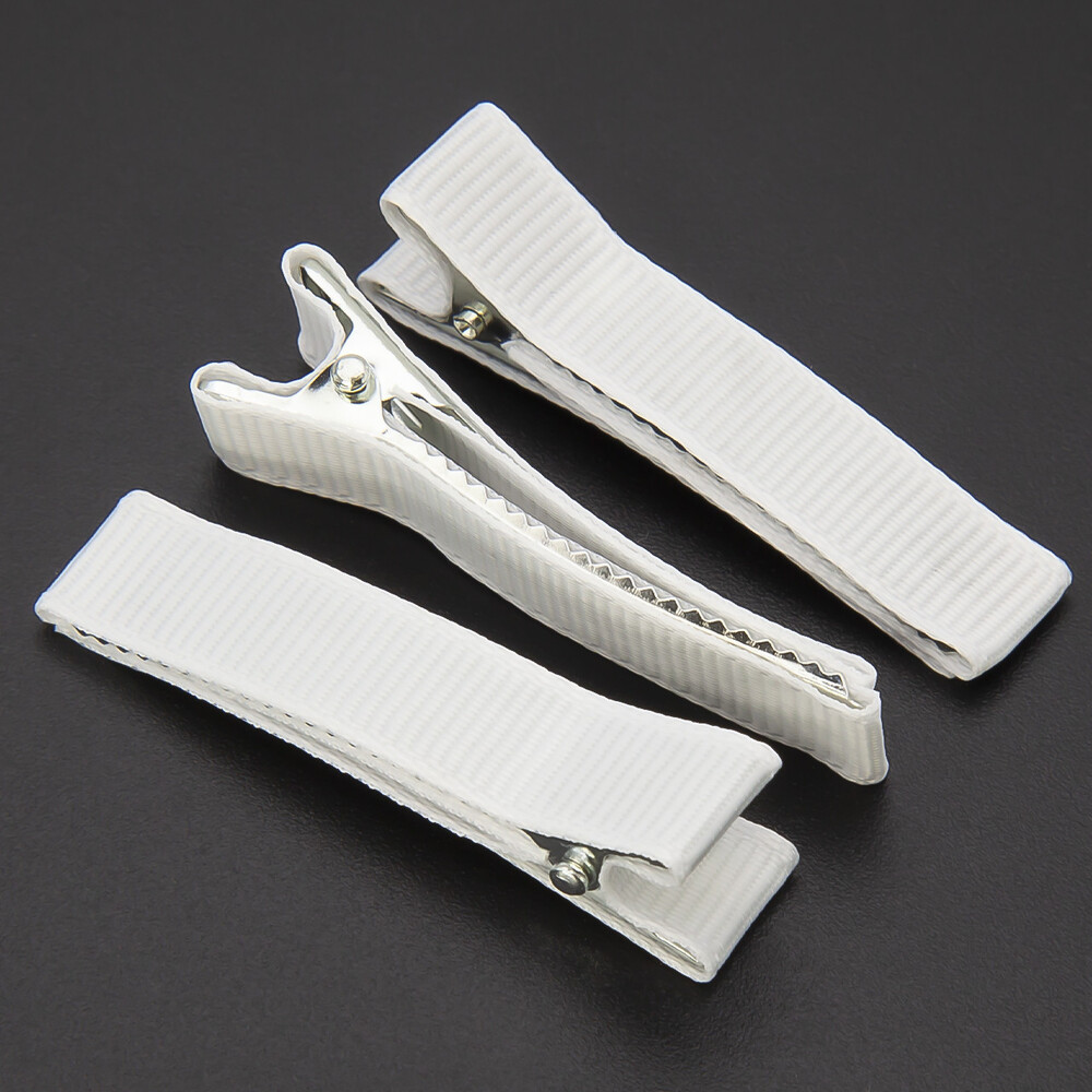 Заколка Крокодил с репсовой лентой 5 шт. 50х10 мм Белый