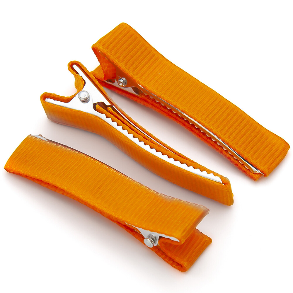 Заколка Крокодил с репсовой лентой 5 шт. 50х10 мм Оранжевый
