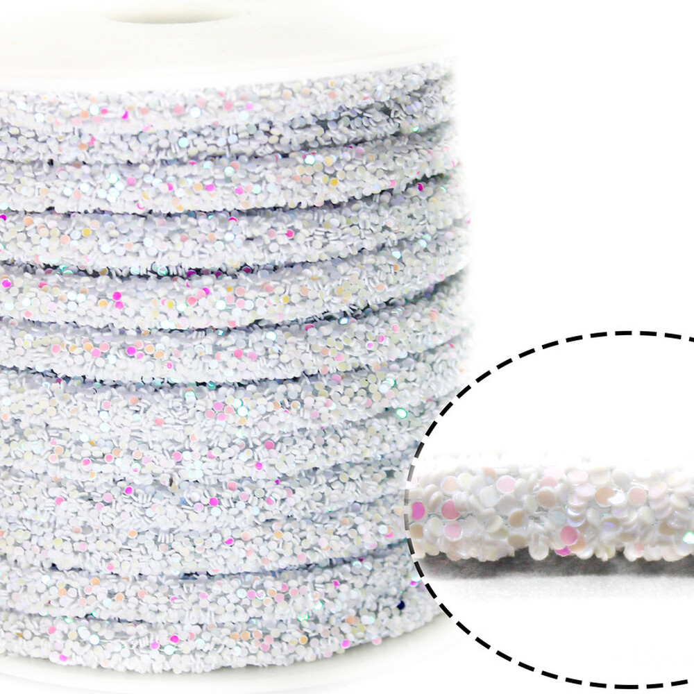 Полый шнур покрытый блёстками 6 мм 1 м Белый АВ