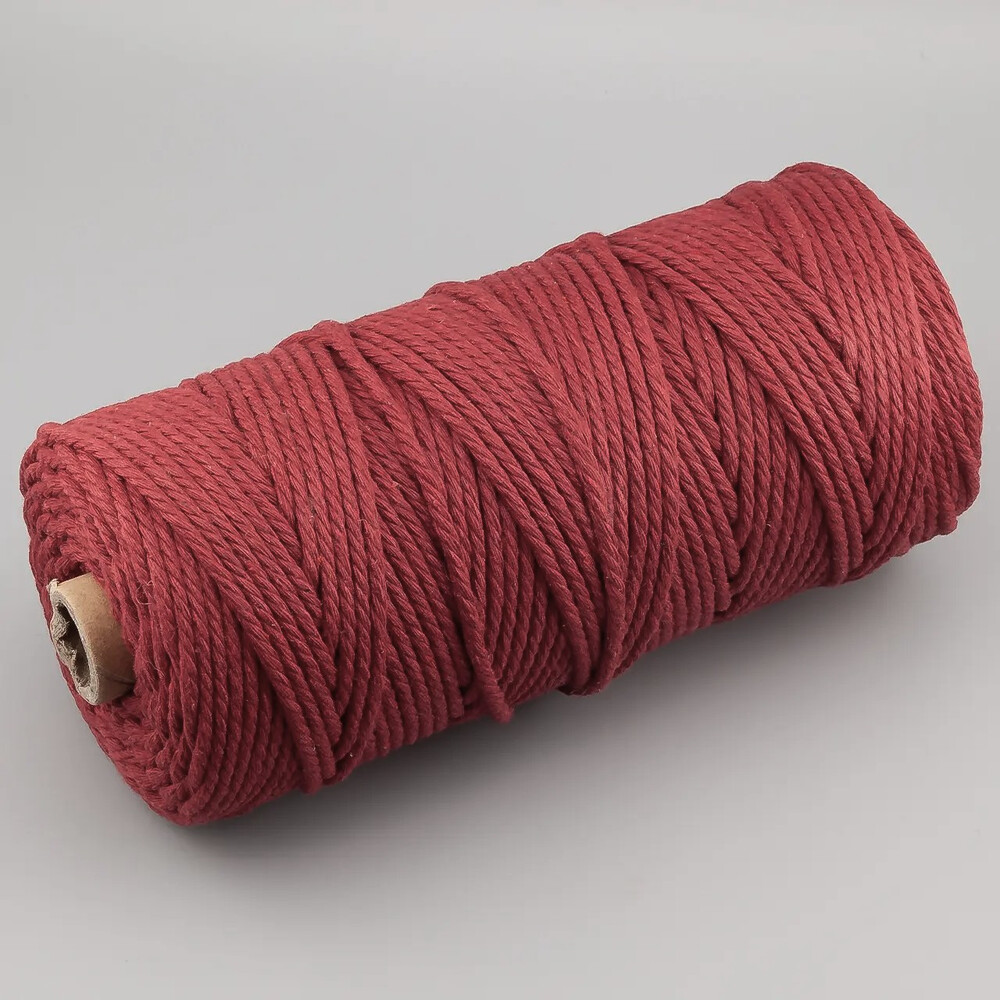 Канат для макраме веревка хлопковая 3 мм +-100 м Бордовый