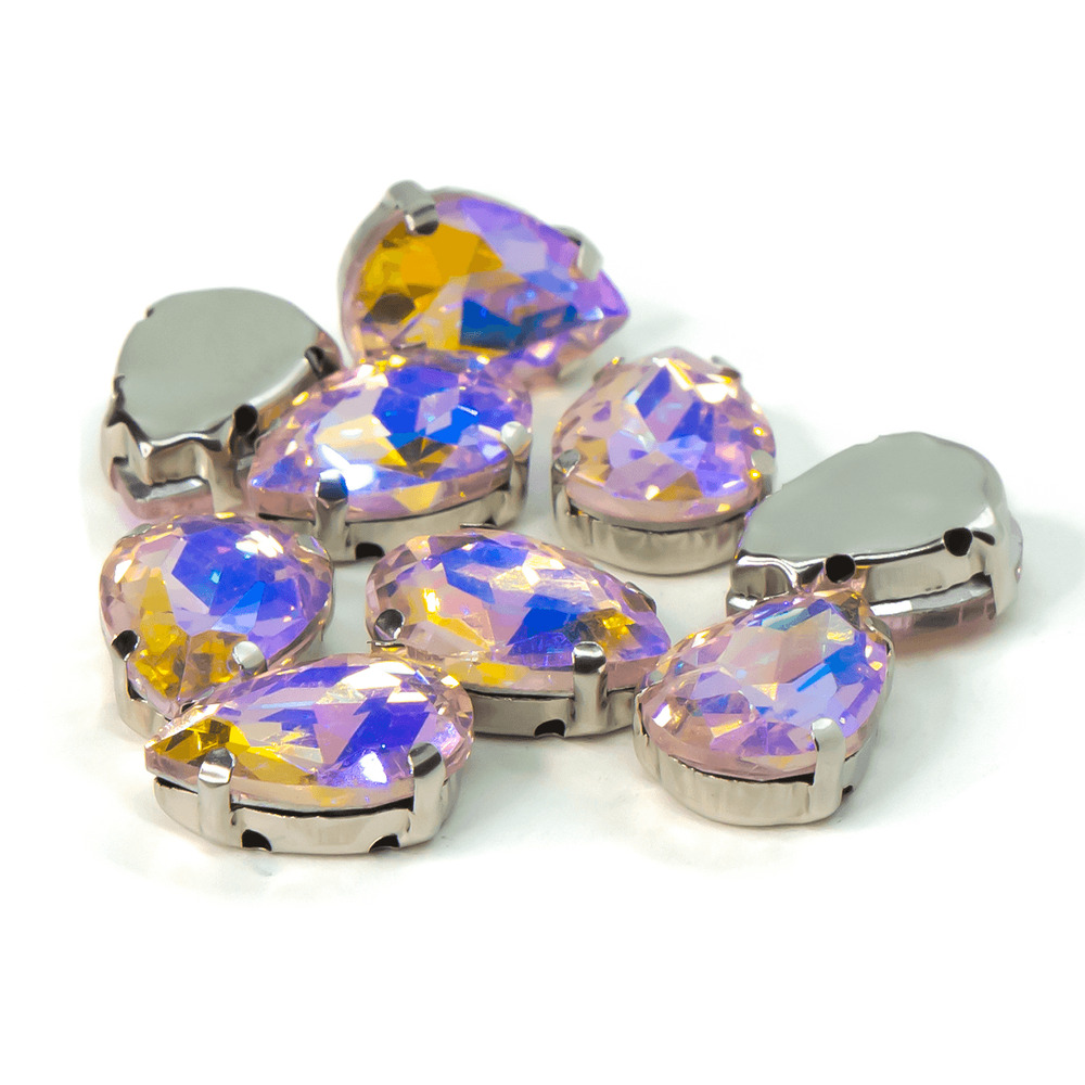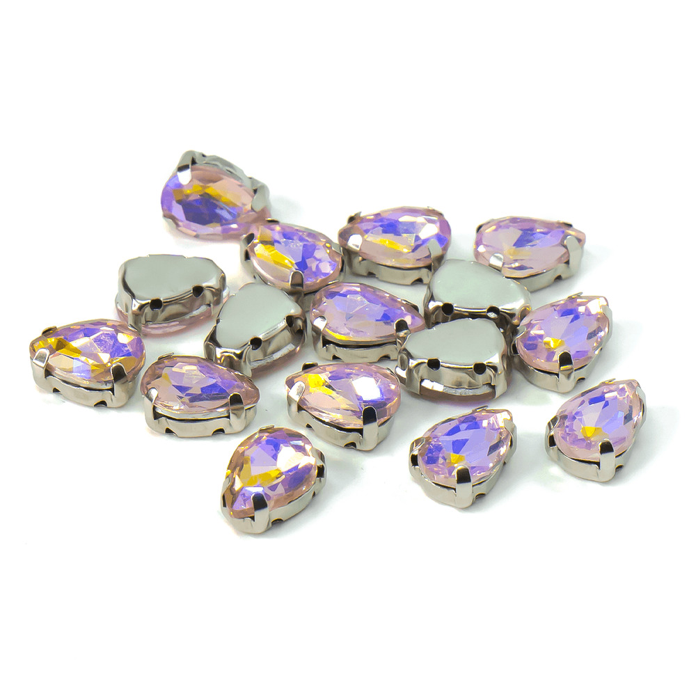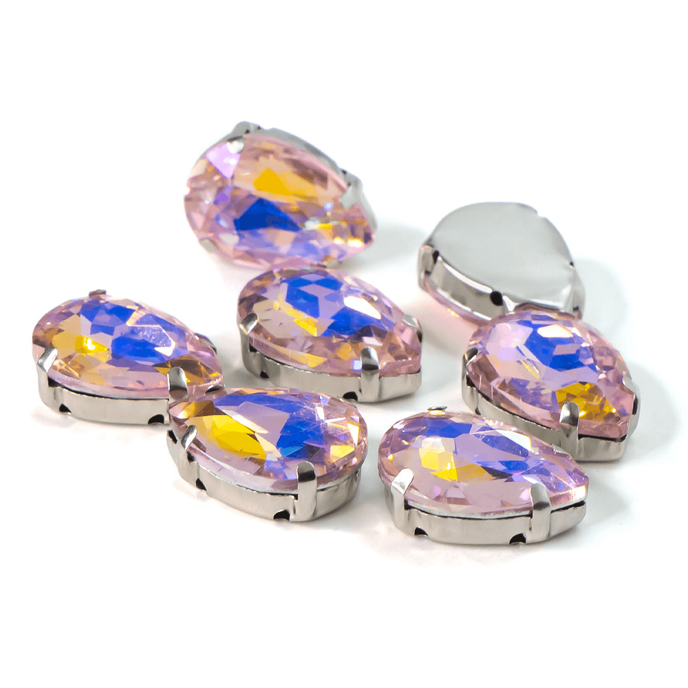 Стразы в цапах пришивные Капля 7х10 мм Розовый светлый АВ 5 шт.