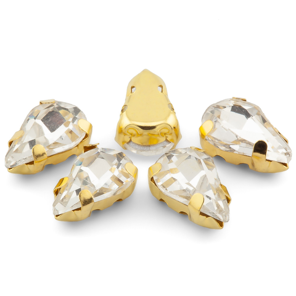 Стразы в золотых цапах Капля 6х10 мм Прозрачный 10 шт.