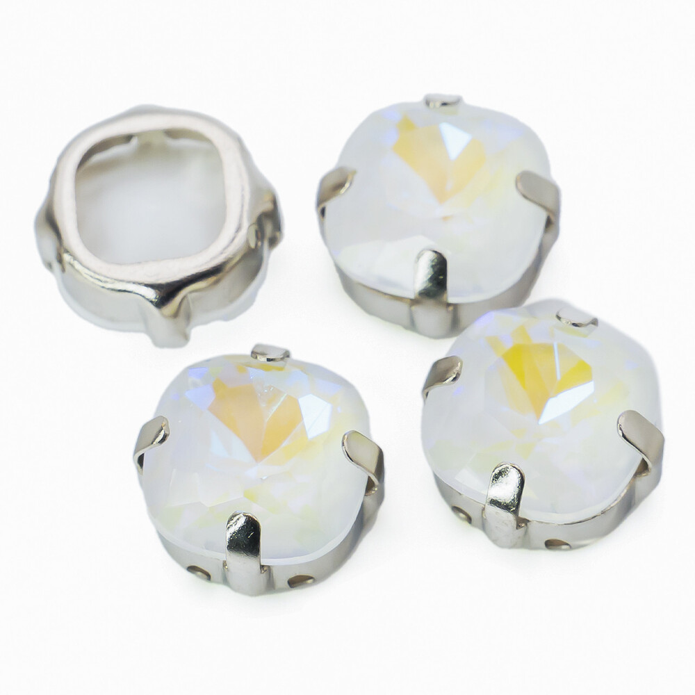 Стразы стекло К9 в цапах Квадрат Белый мокко 6 мм 3 шт. _СМ0602