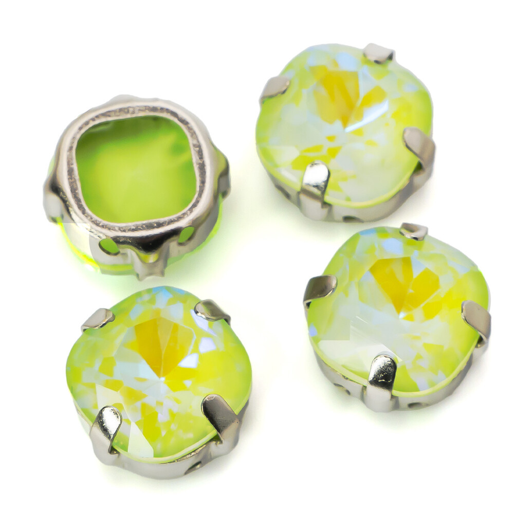 Стразы стекло К9 в цапах Квадрат Оливково- зеленый 6 мм 3 шт. _СМ0606