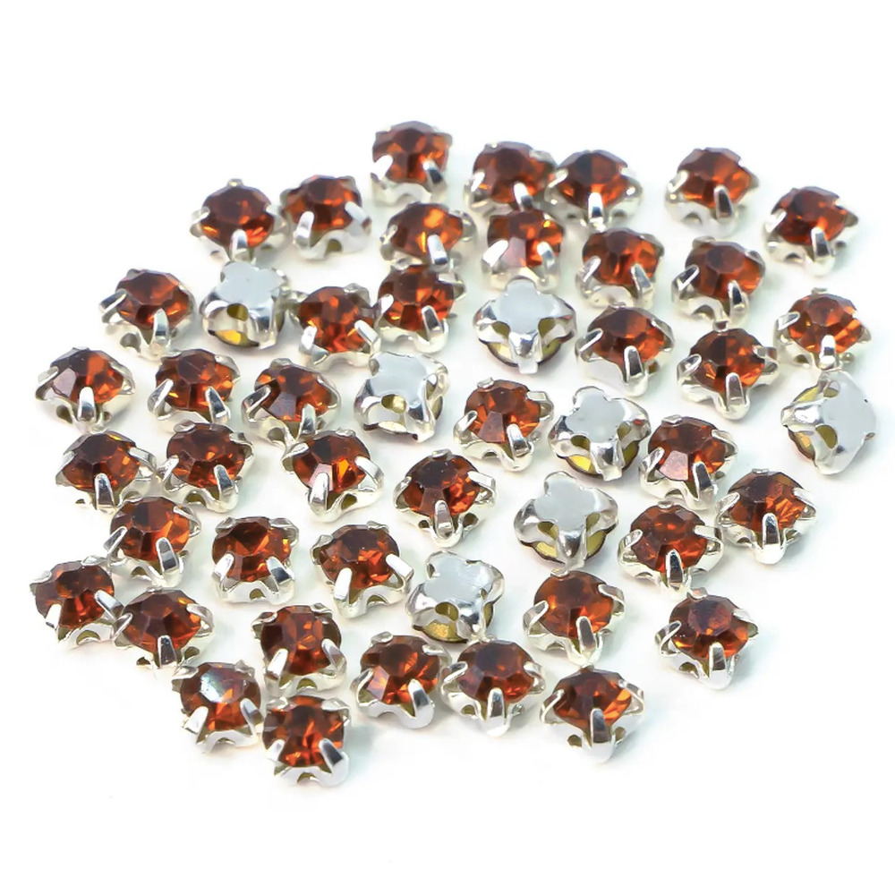 Стразы в цапах пришивные Круглые 5 мм Коричневый 60 шт.