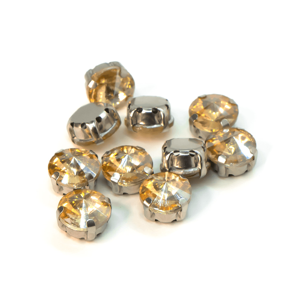Стразы в цапах пришивные Круглые 14 мм Шампань 10 шт.