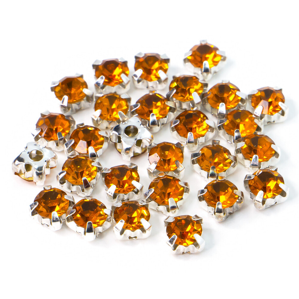 Стразы в цапах пришивные Круглые 4 мм Желтый 60 шт.