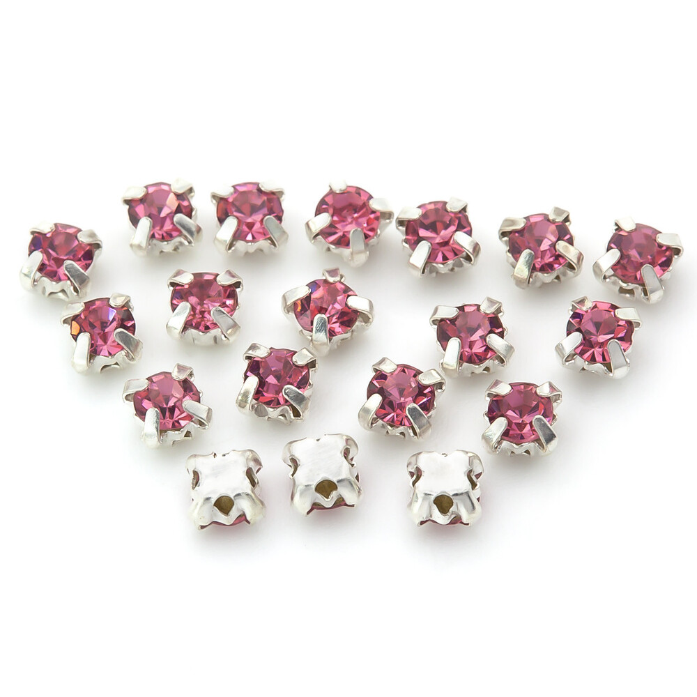 Стразы в цапах пришивные Круглые 4 мм Розово-Красный 60 шт.