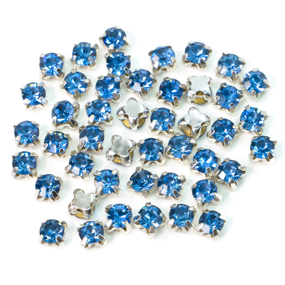 Стразы в цапах пришивные Круглые 4 мм Синий 60 шт.