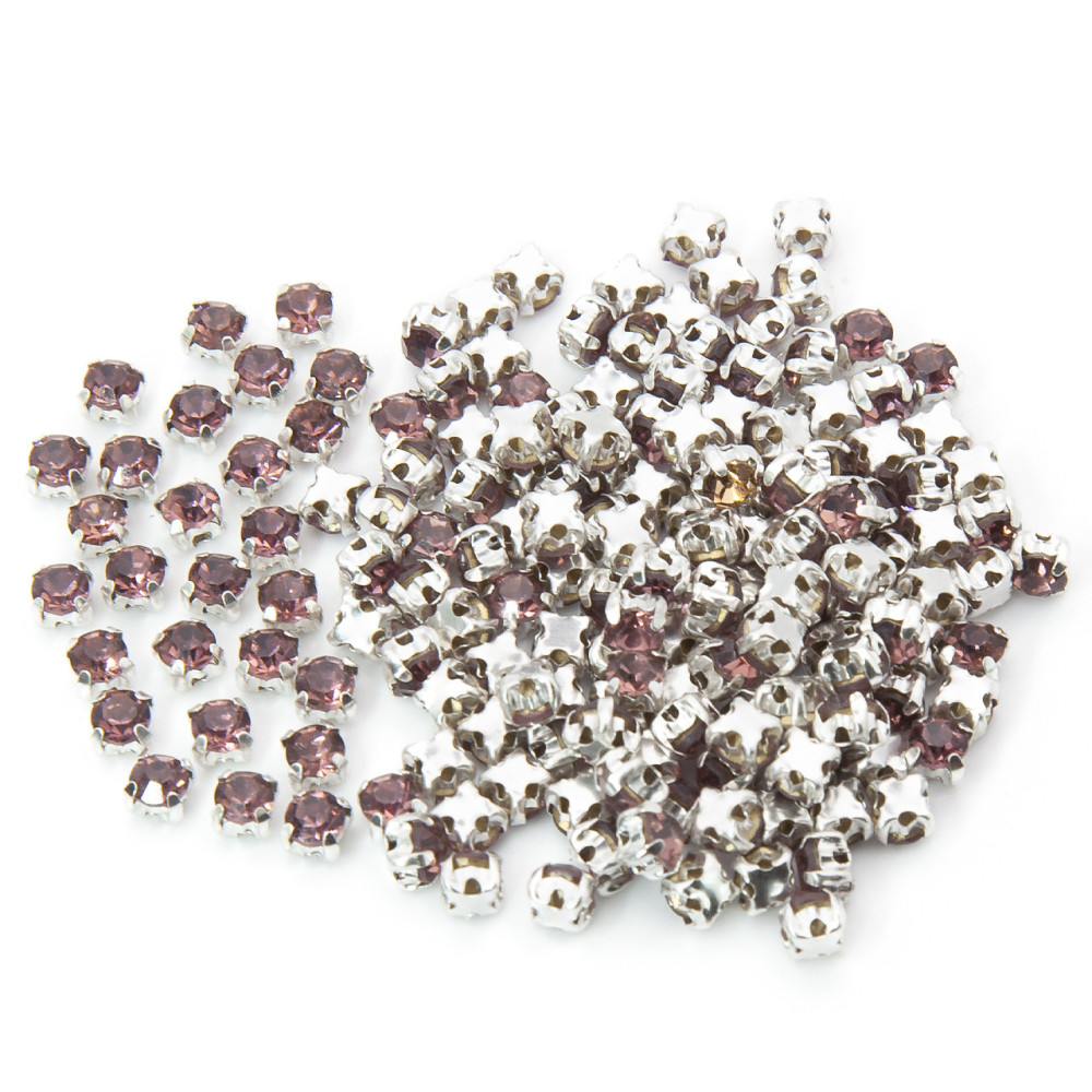 Стразы в цапах пришивные Круглые 4 мм Слива 60 шт.