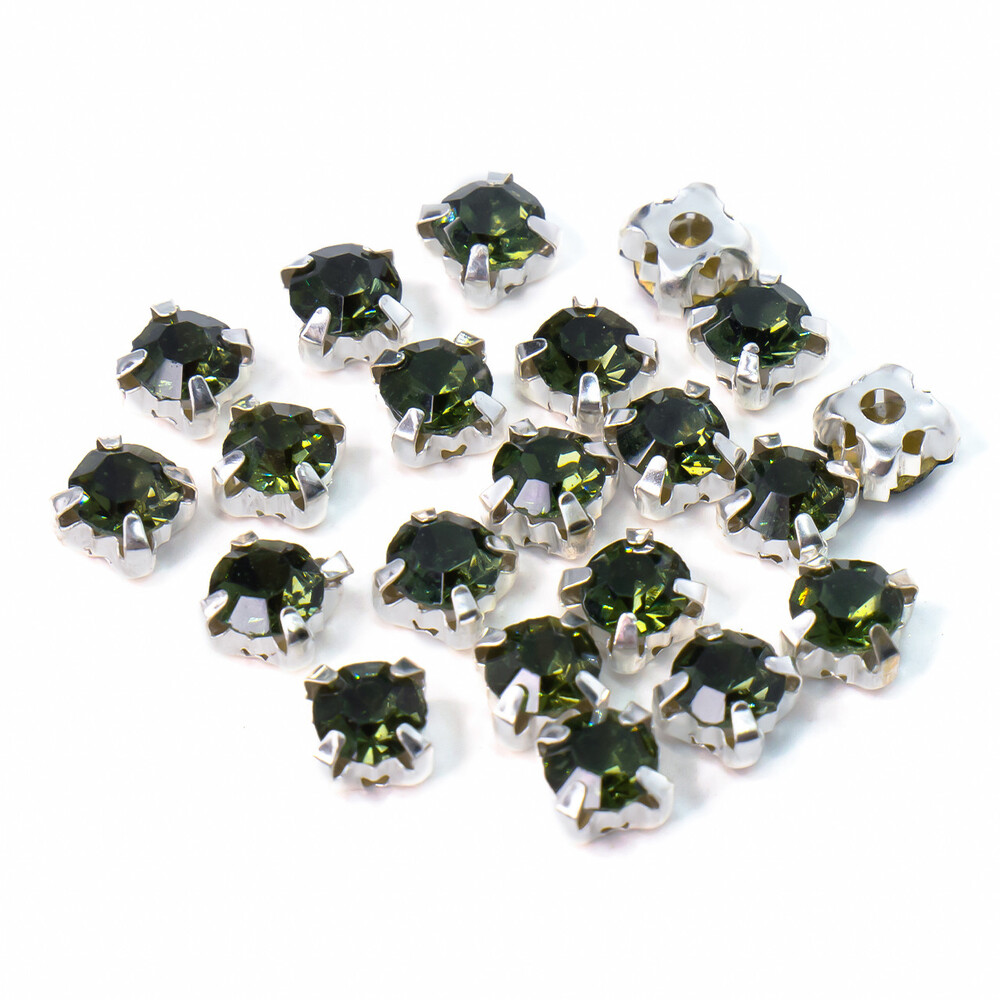 Стразы в цапах пришивные Круглые 8 мм Салатовый темный 30 шт.