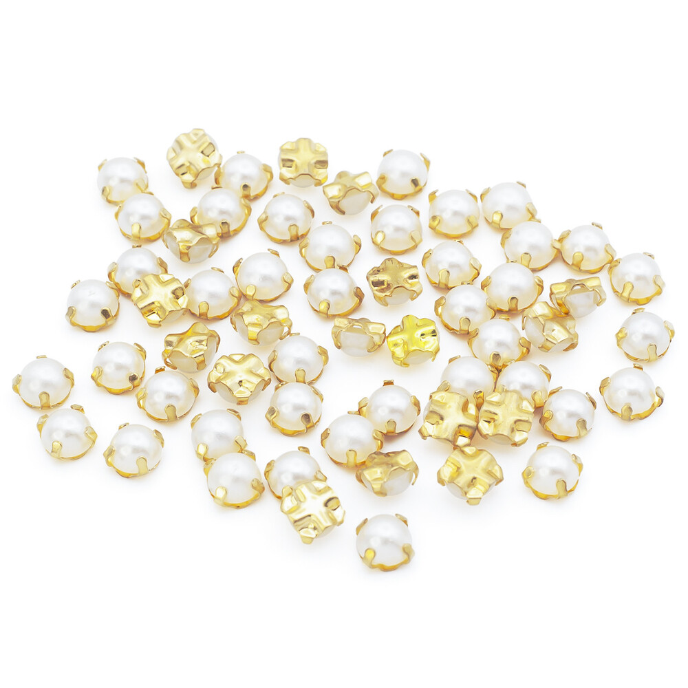 Стразы в золотых цапах Круглые 5 мм Жемчужный 30 шт.