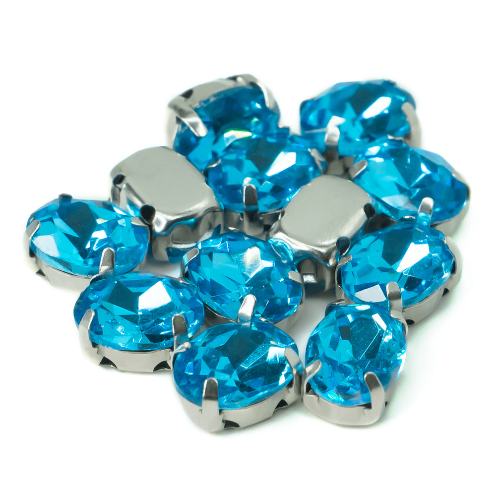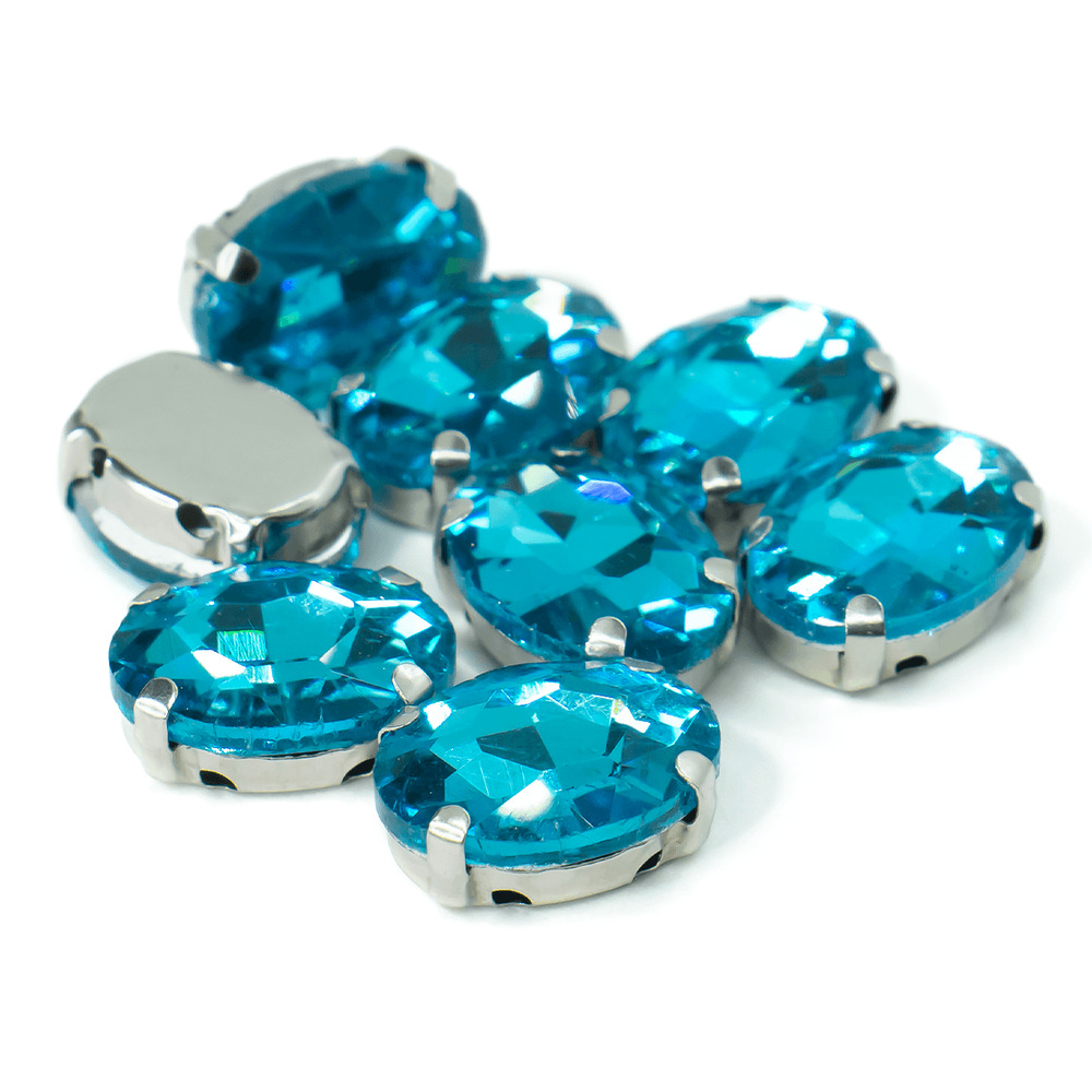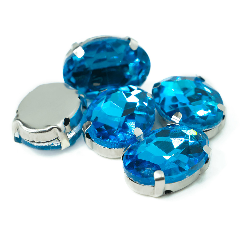 Стразы в цапах пришивные Овал 10х14 мм Голубой 10 шт.