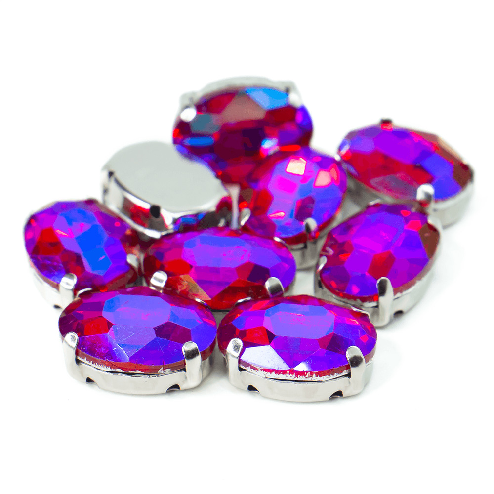 Стразы в цапах пришивные Овал 10х14 мм Красный АВ 5 шт.