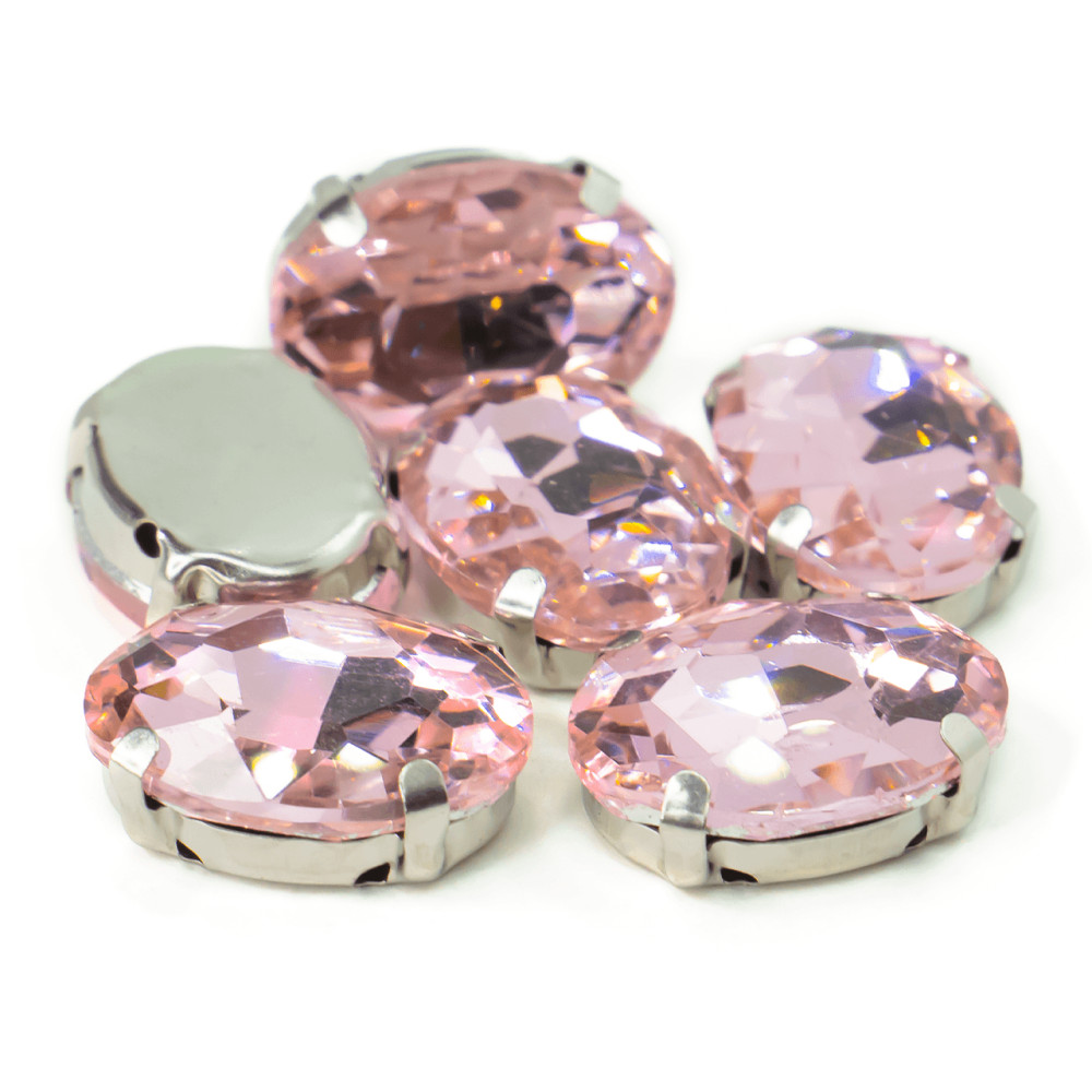 Стразы в цапах пришивные Овал 10х14 мм Розовый светлый 10 шт.