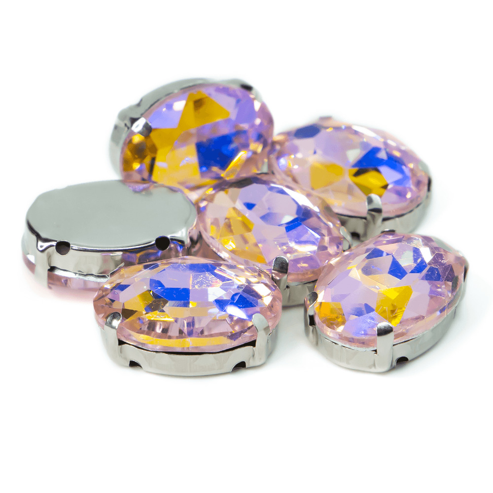 Стразы в цапах пришивные Овал 10х14 мм Розовый светлый АВ 5 шт.