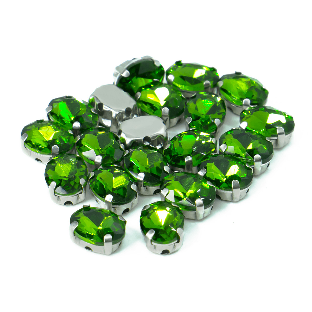 Стразы в цапах пришивные Овал 10х14 мм Салатовый 10 шт.