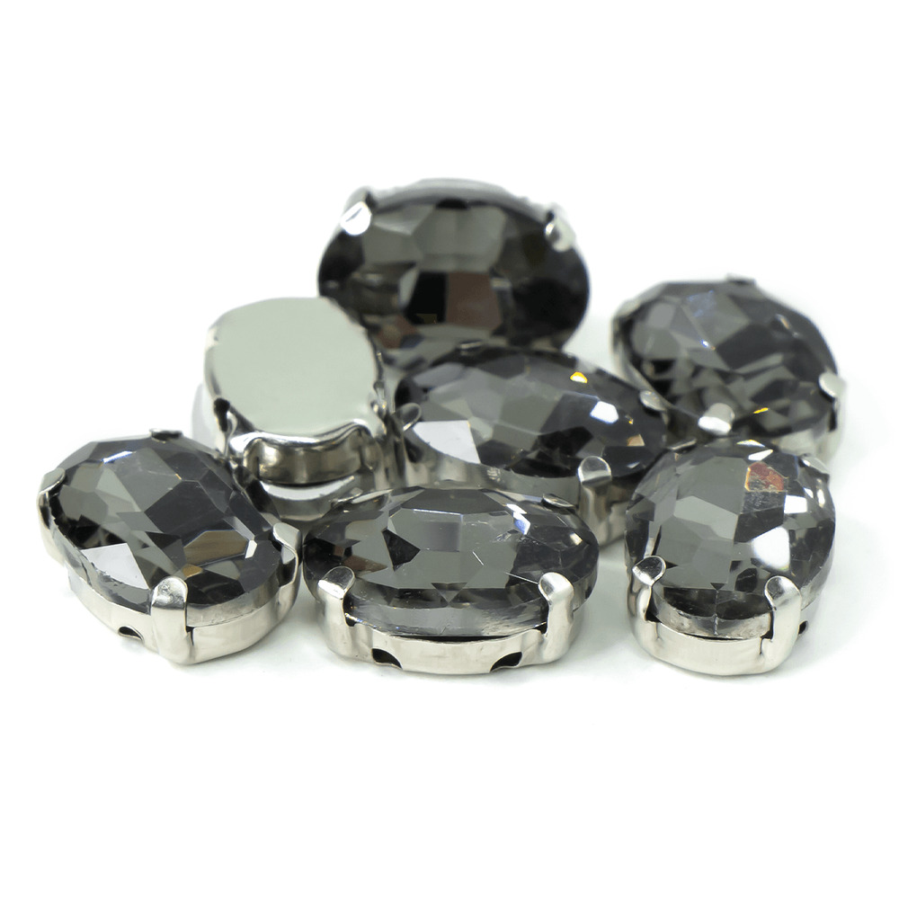 Стразы в цапах пришивные Овал 10х14 мм Серый 10 шт.