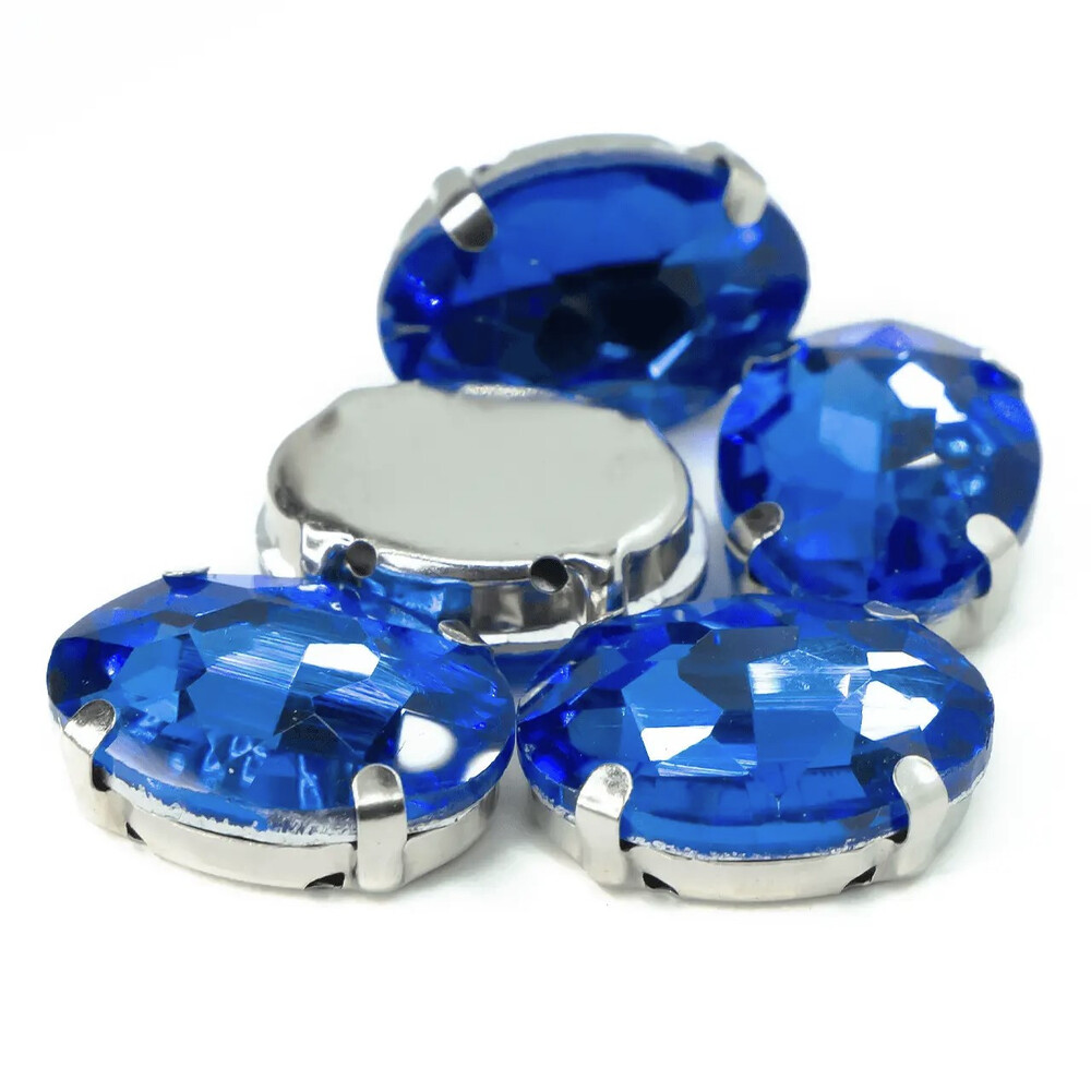 Стразы в цапах пришивные Овал 10х14 мм Синий 10 шт.