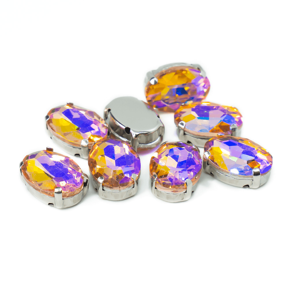 Стразы в оправе пришивные овальной формы — это изящный декоративный элемент, который придает яркий блеск и элегантность любому изделию. Изготовленные из высококачественного стекла, они надежно закреплены в металлической оправе, что позволяет легко пришивать их к ткани или другим основаниям. Овальная форма и разнообразие цветов делают эти стразы универсальным выбором для декорирования одежды, аксессуаров. сумок, обуви или создание авторских украшений.