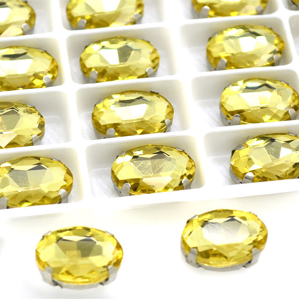 Стразы в цапах пришивные Овал 13х18 мм Цитрин 10 шт.