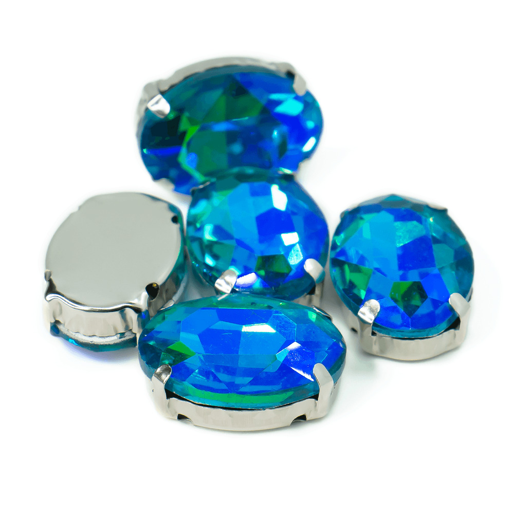Стразы в цапах пришивные Овал 13х18 мм Синий АВ 5 шт.