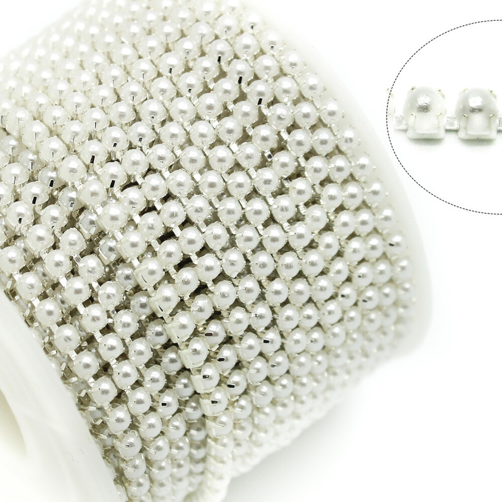 Жемчужная цепь — это изысканный декоративный элемент, который станет идеальным дополнением к вашим творческим проектам, аксессуарам, одежде или декору. Он выглядит очень элегантно и роскошно благодаря гармоничному сочетанию жемчужин с металлическими цапами. Каждая жемчужина надежно закреплена в металлическом цапе, что обеспечивает не только эстетическую привлекательность, но и прочность конструкции. Длина цепи — 1 метр (приблизительно 320 жемчуженок), что делает его удобным в использовании как для мелких, так и для масштабных проектов. Изделие доступно в различных цветах цапов, что позволяет подобрать вариант, который лучше всего подходит для конкретного стиля или тематики изделия.