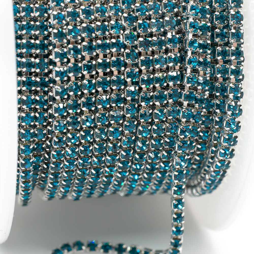 Стразовая цепь ss10 (2,8 мм) 1 м Aquamarine dark silver
